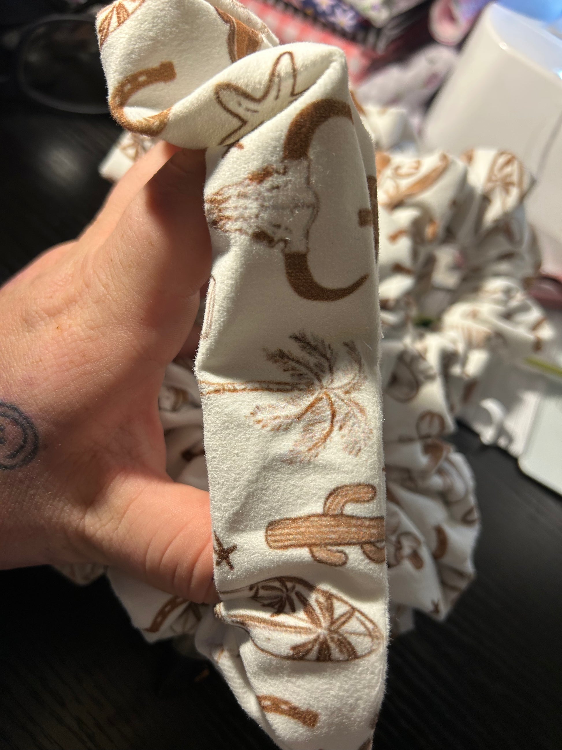 Im Your Huckleberry is made in memory of our late Val Kilmer who those in the know played Doc Holliday In Tombstone and said the phrase I'm your huckleberry to Johnny Ringo. this scrunchie is made to remember a great actor taken to soon.